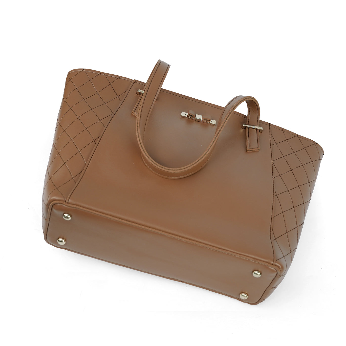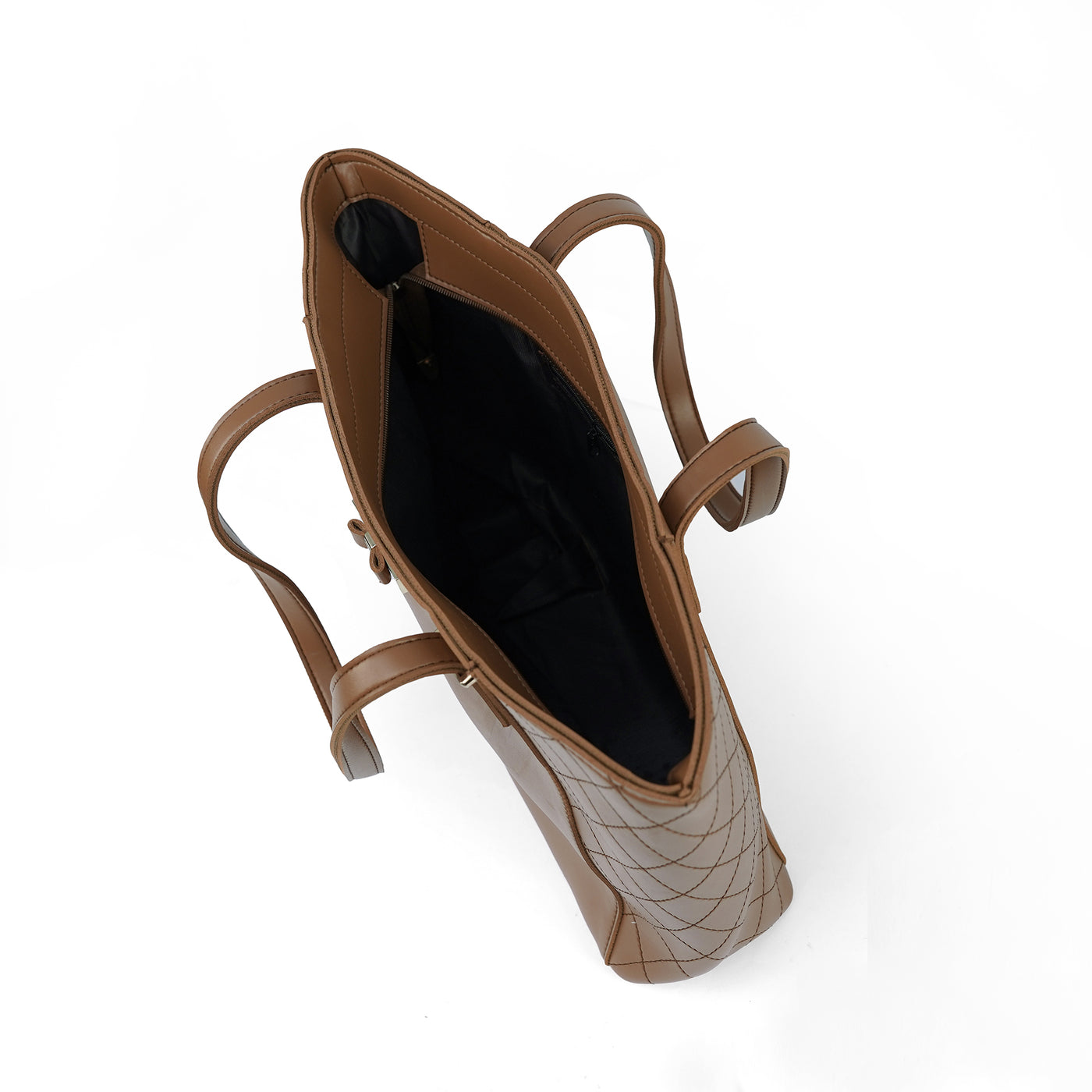 Bring warmth and sophistication to your wardrobe with the Luxe Stitch Edition Caramel Brown Tote Bag by BagsOnline.